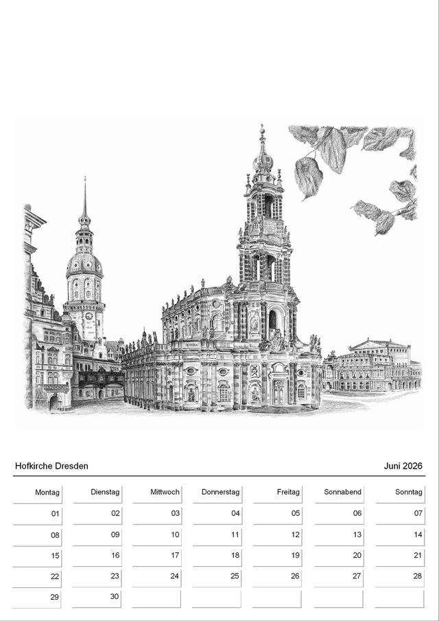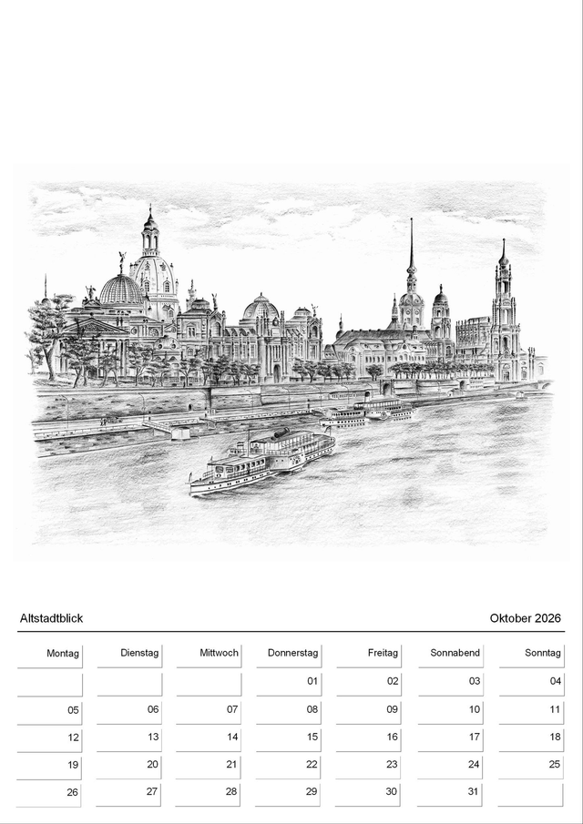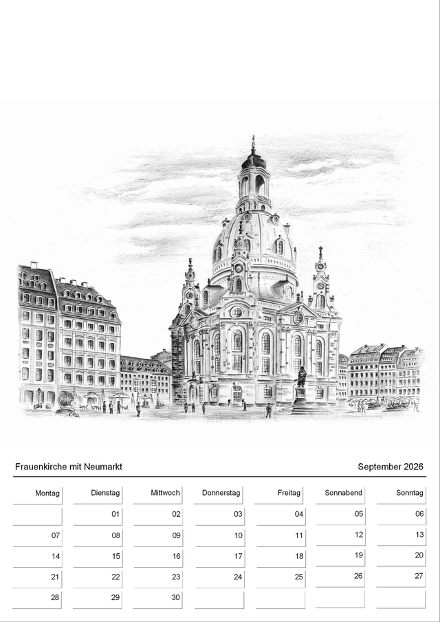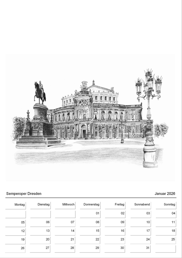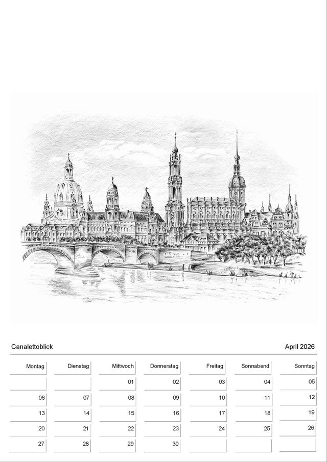Dresden Kalender 2026 Bleistiftzeichnungen